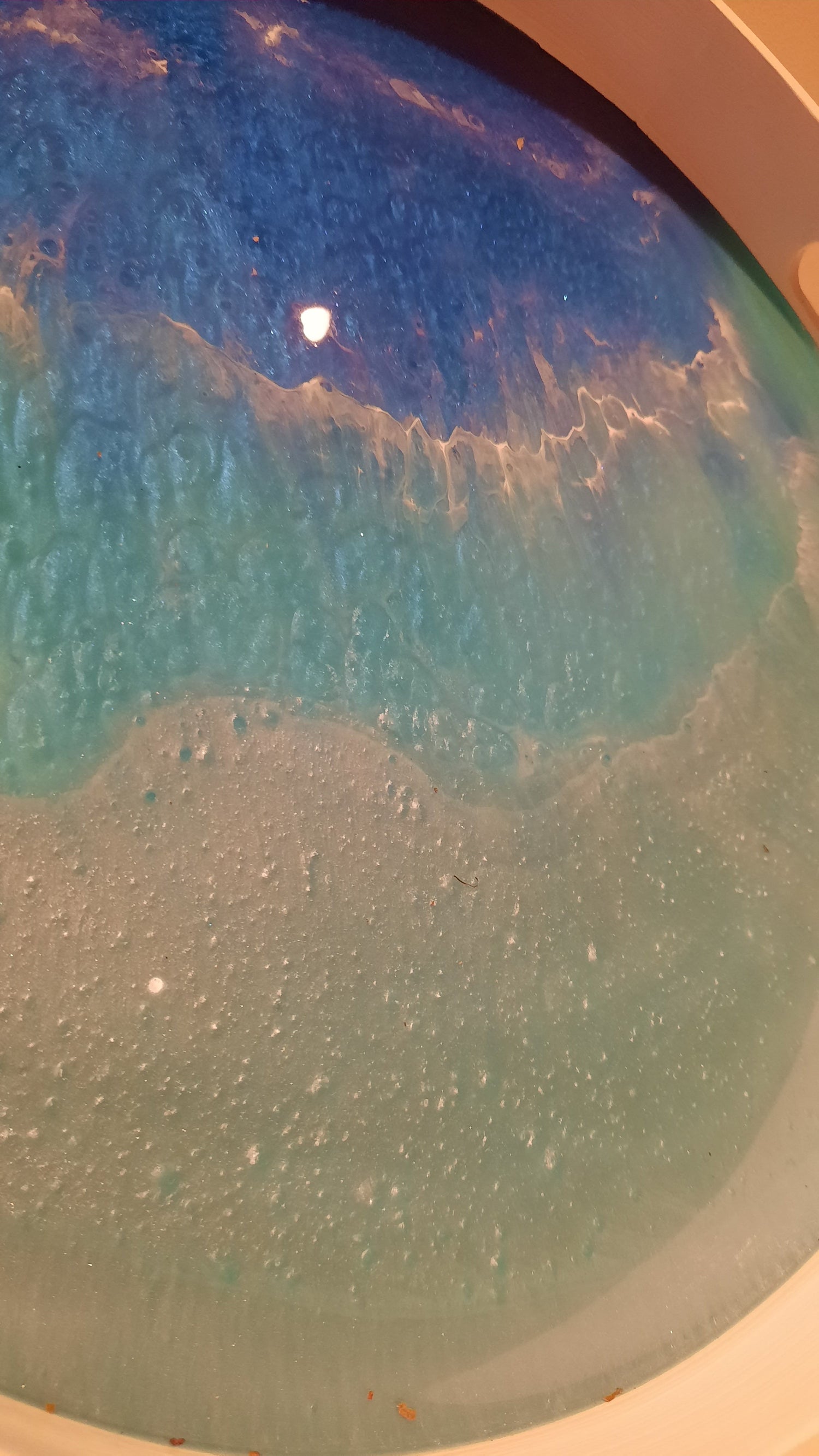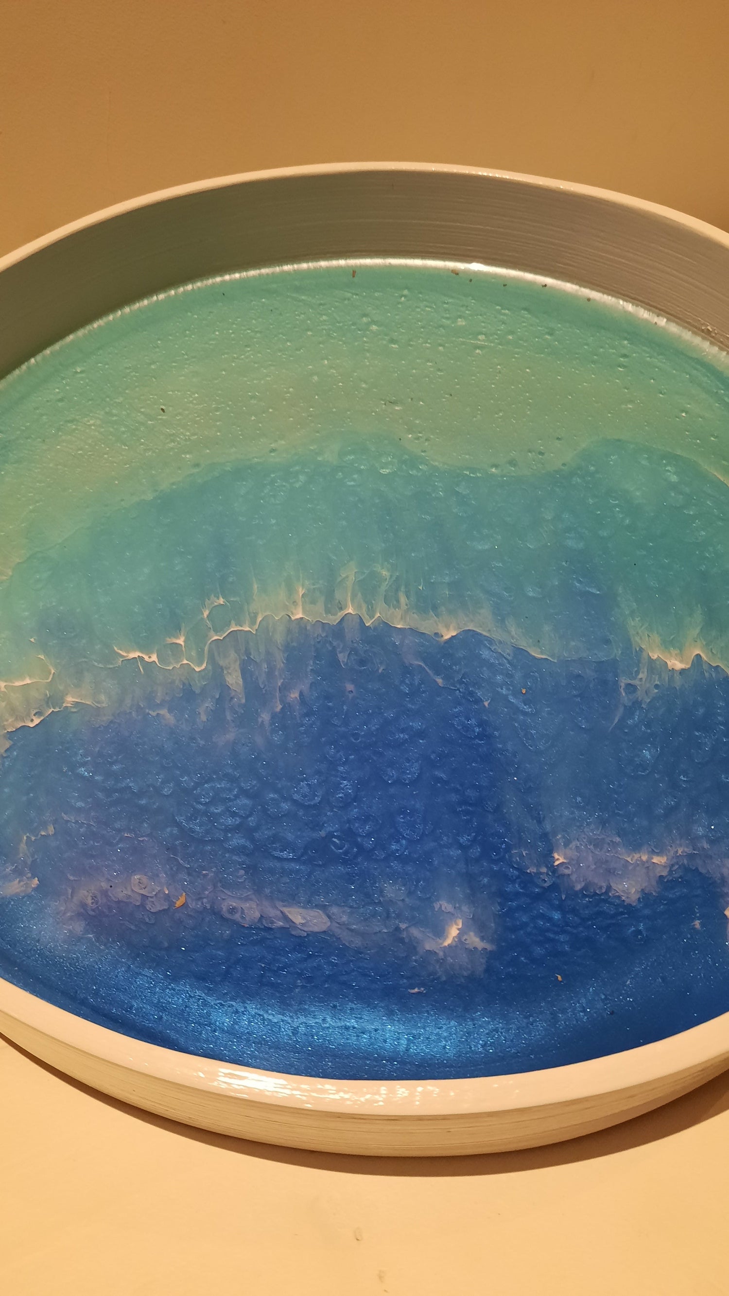 Breng de rust van de zee in huis met de TXTRENDING Ocean Tray – Handgemaakt Dienblad met Epoxy Zee | Ø 30 cm 🌊