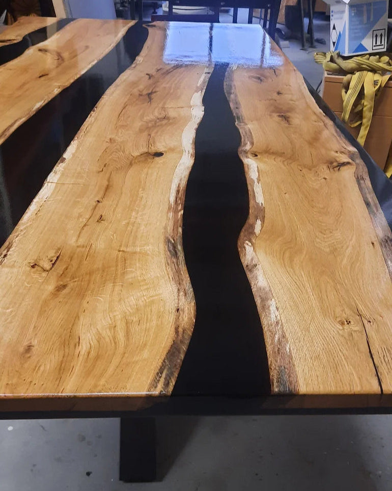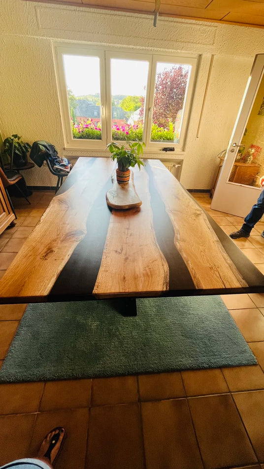 Luxe Eettafel van Eikenhout & Zwarte Epoxy