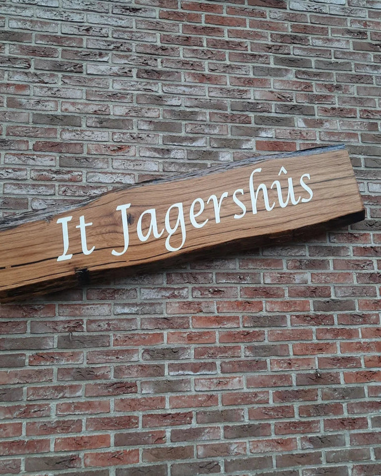 Dit unieke naambord is gemaakt van een robuust stuk eikenhout. De uitgefreesde letters zijn opgevuld met witte epoxy en afgewerkt met een sterke 2-componenten lak voor duurzame bescherming en een stijlvolle uitstraling.