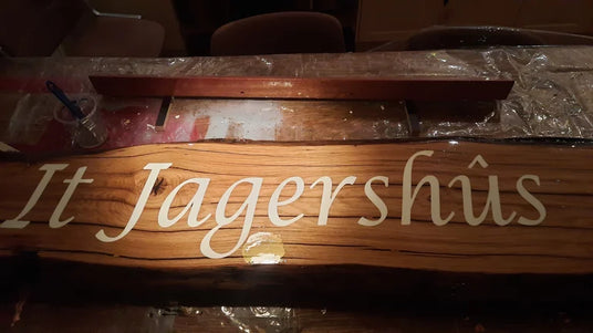 Stoer Naambord van Eikenhout met Witte Epoxy