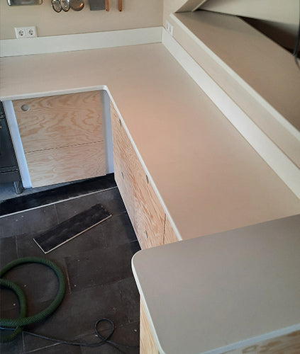 Voor dit project realiseerden we een exclusief, op maat gemaakt keuken- en barblad in de uitvoering Barbados extra mat. Een stijlvolle combinatie van maatwerk en hoogwaardige afwerking die perfect aansluit bij het ontwerp van de keuken.
