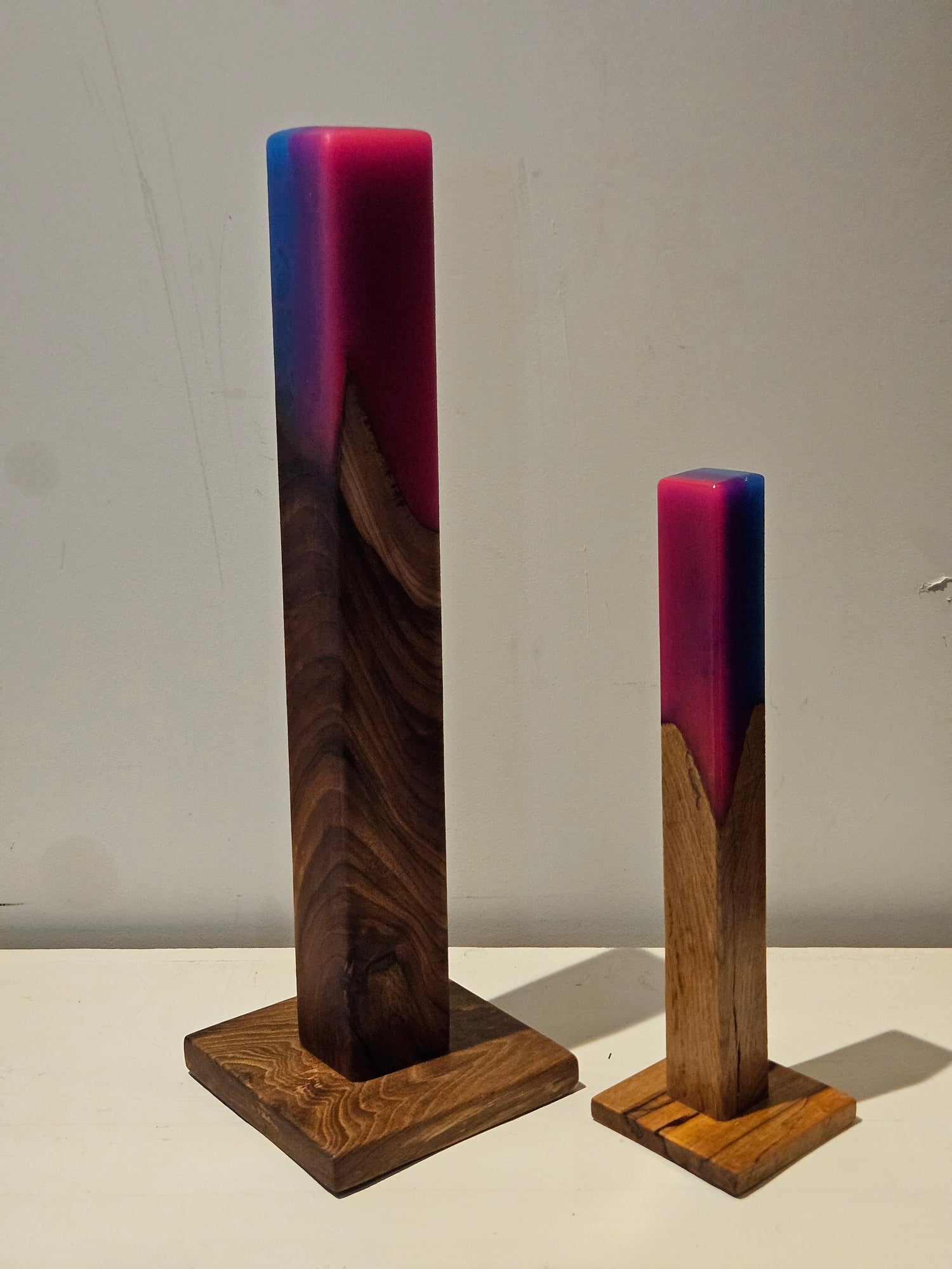 TX trending Decoratieve Houten Sculpturen met Epoxy – Glow in the Dark – Set van 2 – 52 & 35 cm – Handgemaakt is nabesteld en wordt verzonden zodra het weer op voorraad is.