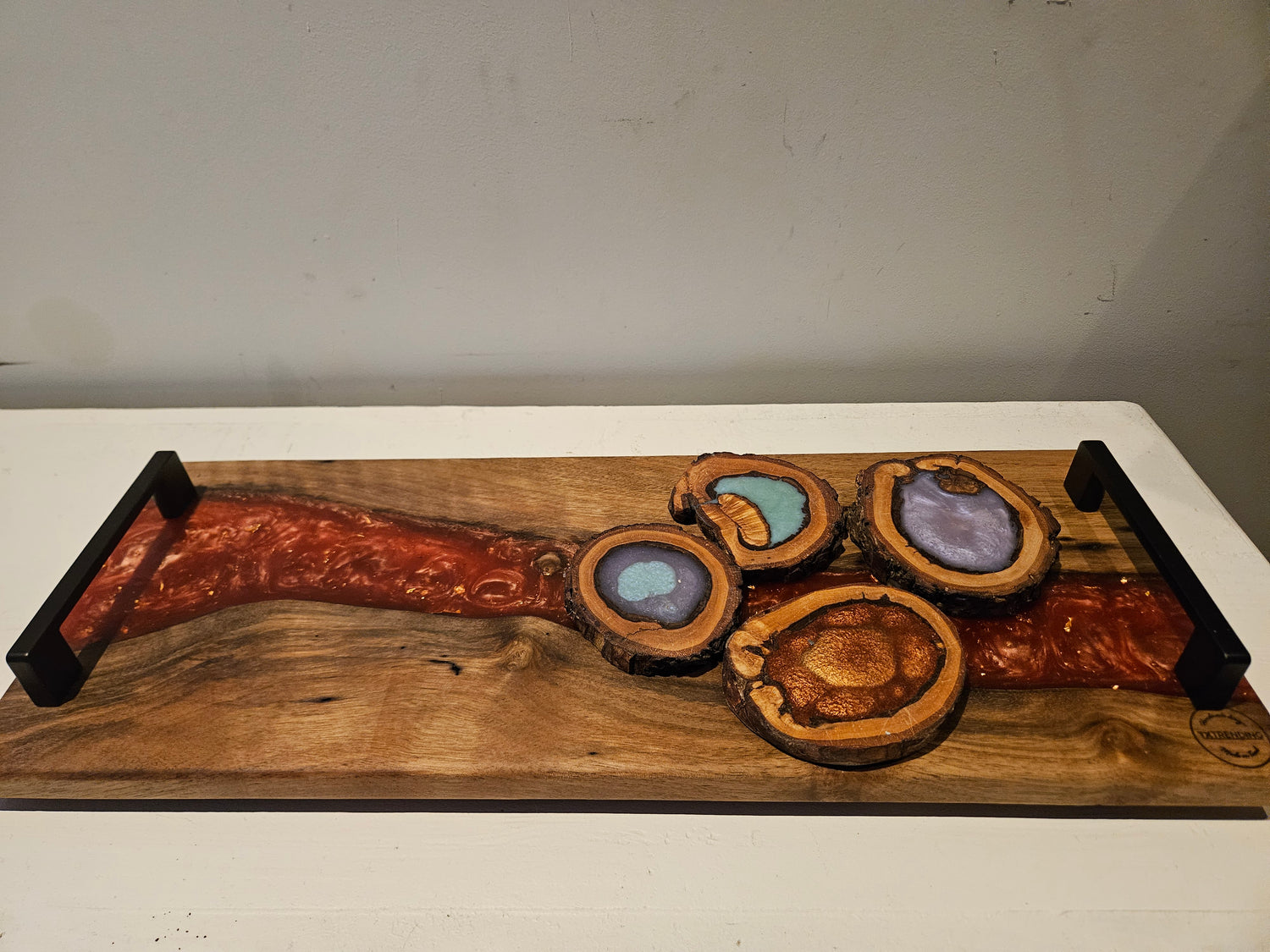 TXTRENDING Serveerplank met Onderzetters – Hout & Epoxy – Set van 5 – 51×20 cm – Handgemaakt is nabesteld en wordt verzonden zodra het weer op voorraad is.